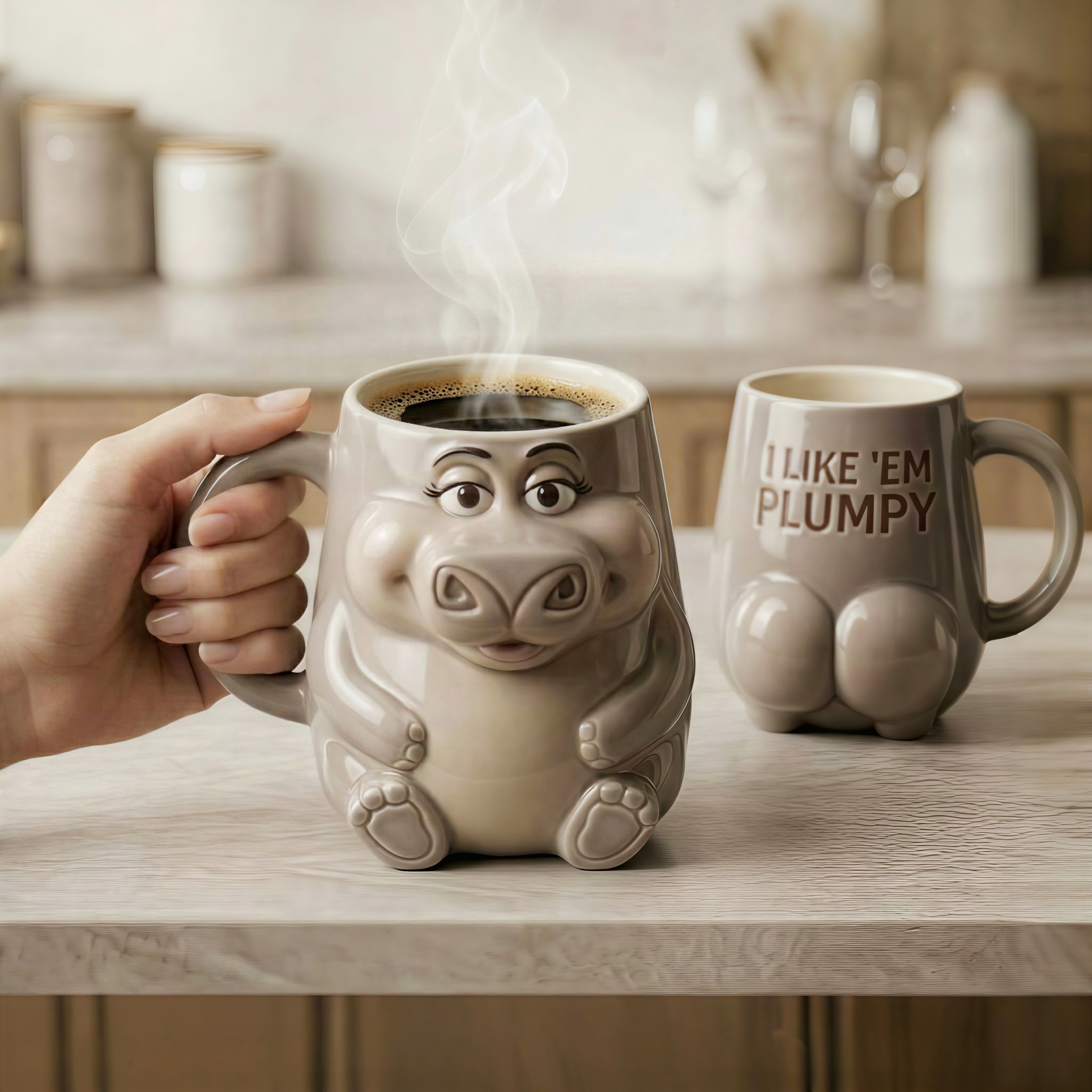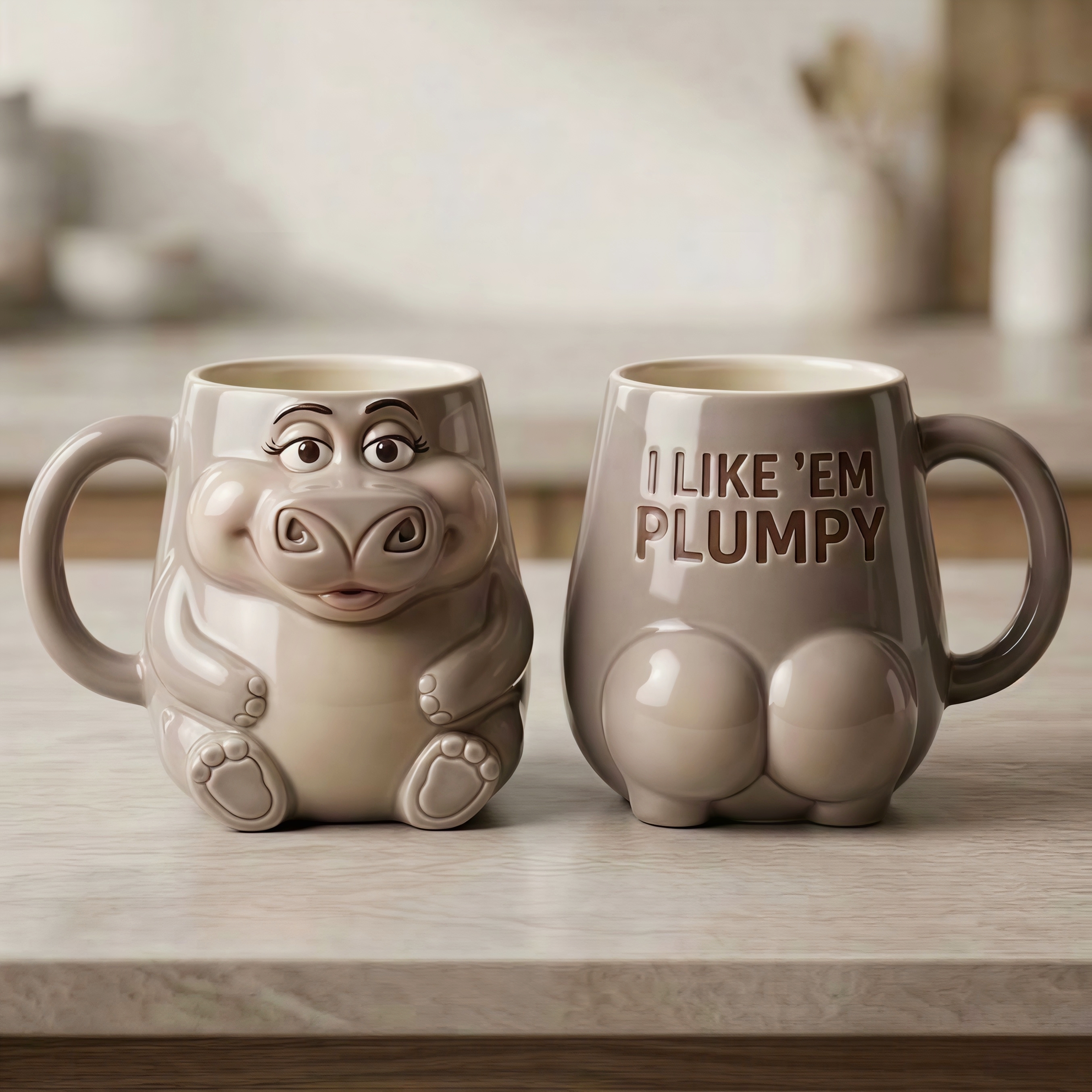 Gloria Hippo "I Like 'Em Plumpy" 3D Ceramic Mug - Fun Novelty Coffee Cup 🦛☕
