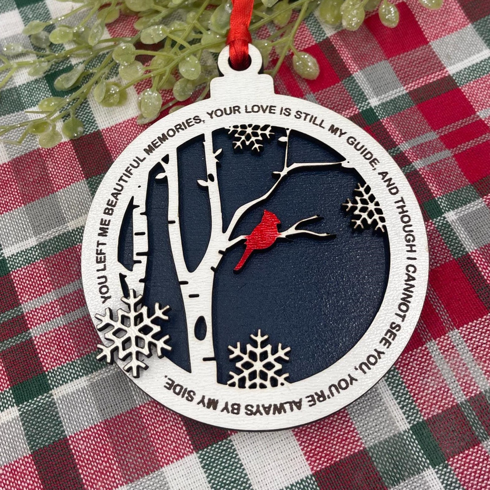 ❤️Featuring a delicate cardinal—symbolizing love and remembrance—this heartfelt piece is engraved with the touching message: