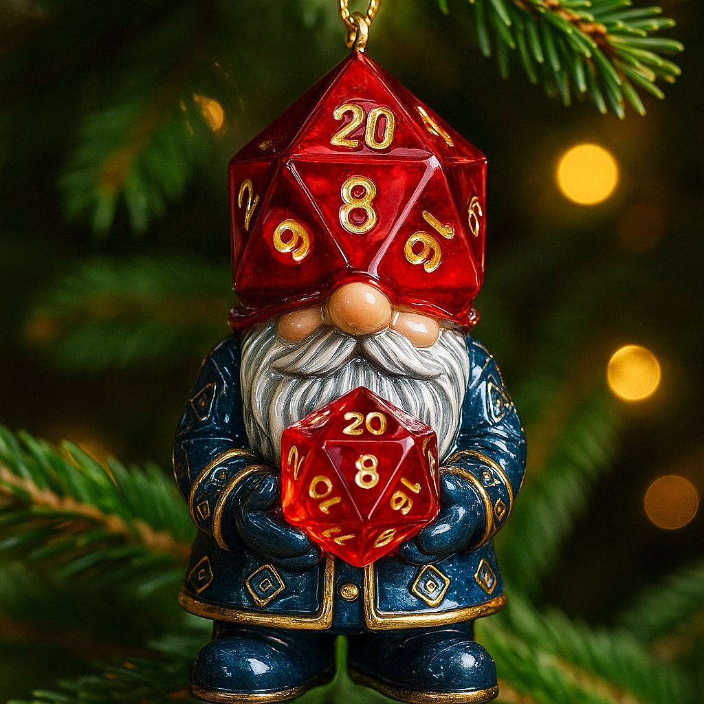• 1 x D20 Dice Gnome Christmas Ornament