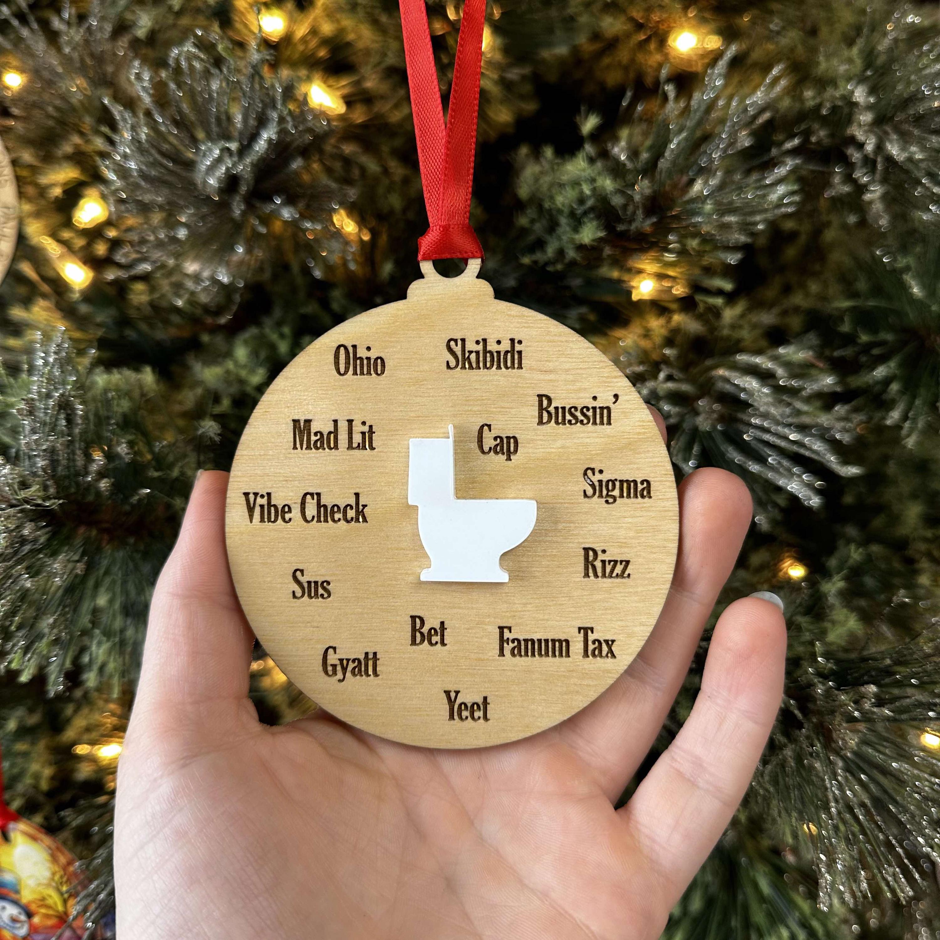From “Skibidi” to “Rizz” and beyond, this ornament captures the quirky language of today’s youngest generation. It’s a playful way to bring humor into your holiday decor.