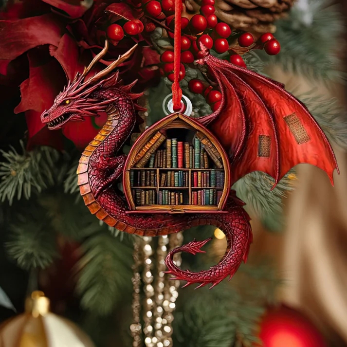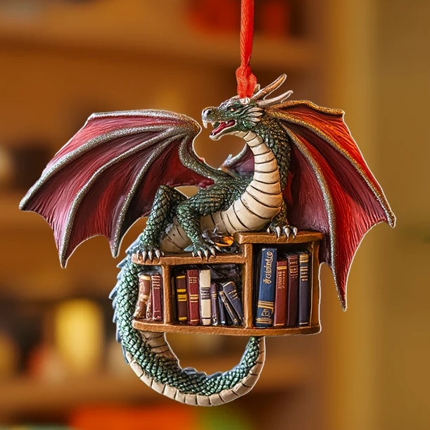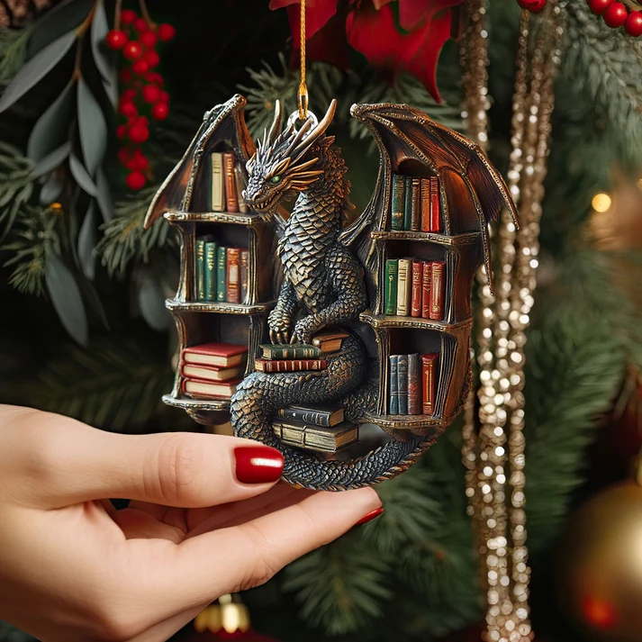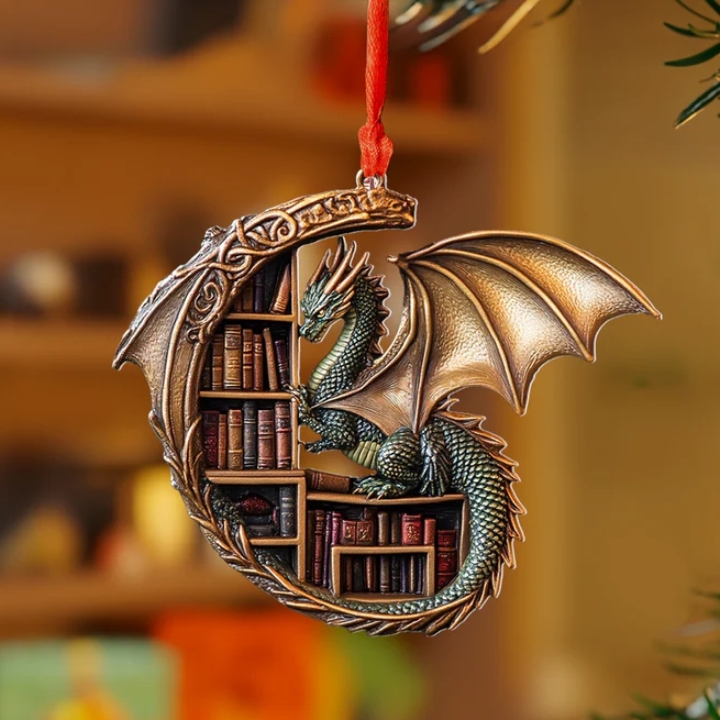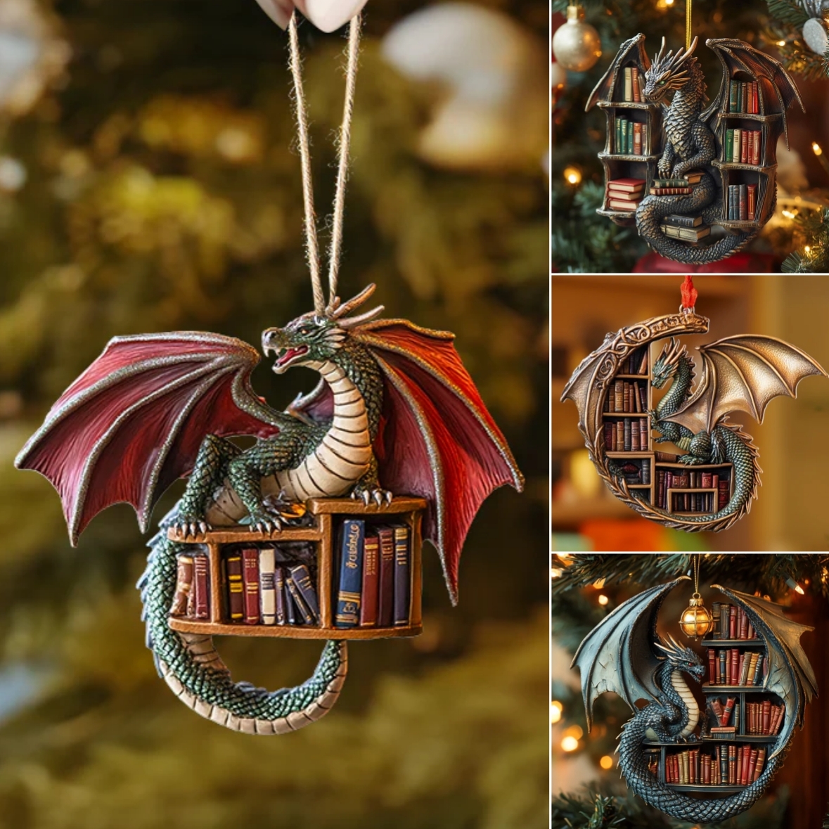 🤩Let this magical Guardian Dragon Bookshelf Ornament guard your beloved books on the Christmas tree.